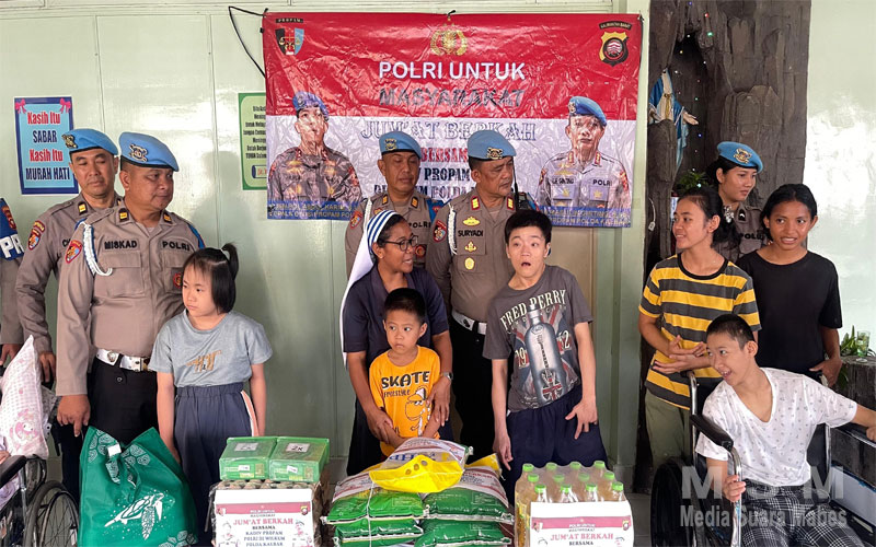 MediaSuaraMabes, Pontianak Kalbar – Dalam rangka mempererat silaturahmi dan meningkatkan kepedulian sosial, Bidpropam Polda Kalimantan Barat melaksanakan kegiatan Jum’at Berkah dengan menyalurkan bantuan sosial kepada anak-anak di Yayasan Panti Asuhan Yatim Piatu Bhakti Luhur, Jumat (20/02).
