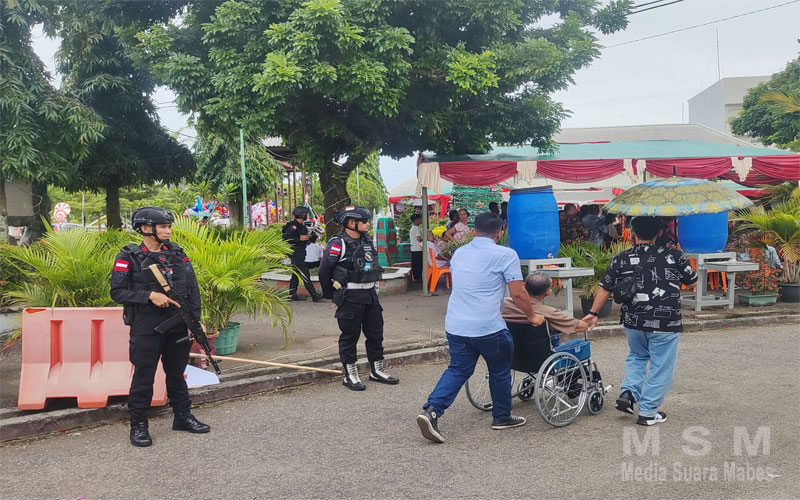 MajalahPerwira, Kalbar – Satbrimob Polda Kalimantan Barat melakukan pengamanan ibadah Natal disejumlah gereja yang ada di Provinsi Kalbar. Senin (25/12/23).