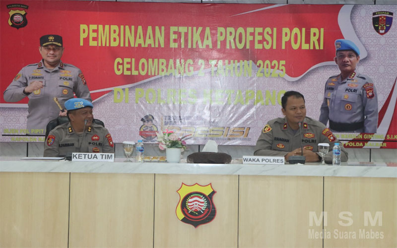 MediaSuaraMabes, Ketapang Kalbar – Bidang Profesi dan Pengamanan (Bipropam) Kepolisian Daerah (Polda) Kalimantan Barat (Kalbar) menyelenggarakan pembinaan etika profesi Polri di jajaran Polres Ketapang, Rabu pagi (24/09/2025). Kegiatan ini digelar untuk bertujuan untuk meningkatkan disiplin, profesionalisme, serta kepatuhan anggota terhadap Kode Etik Profesi Polri.
