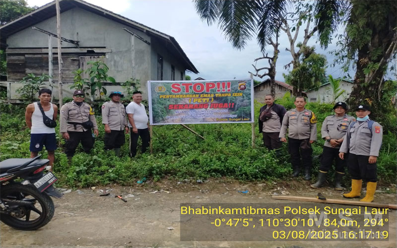 Selain patroli, kegiatan juga diisi dengan pemasangan spanduk himbauan cegah pertambangan liar serta dialog bersama masyarakat, di mana anggota Polsek Laur menyampaikan edukasi terkait dampak negatif pertambangan ilegal, seperti pencemaran air akibat penggunaan zat kimia berbahaya, kerusakan hutan, serta ancaman hukuman pidana bagi pelaku.
