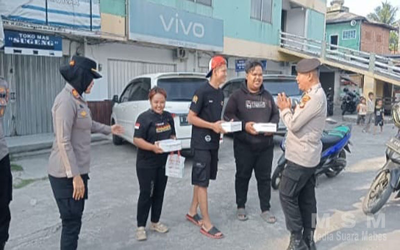 Suasana akrab nampak terlihat antara petugas kepolisian dan warga masyarakat di lokasi tersebut, selain memberikan sosialisasi pada warga wakapolsek bersama petugasnya juga memberikan makanan siap saji pada pada ojek pangkalan dan petugas juru parkir di pasar tersebut.