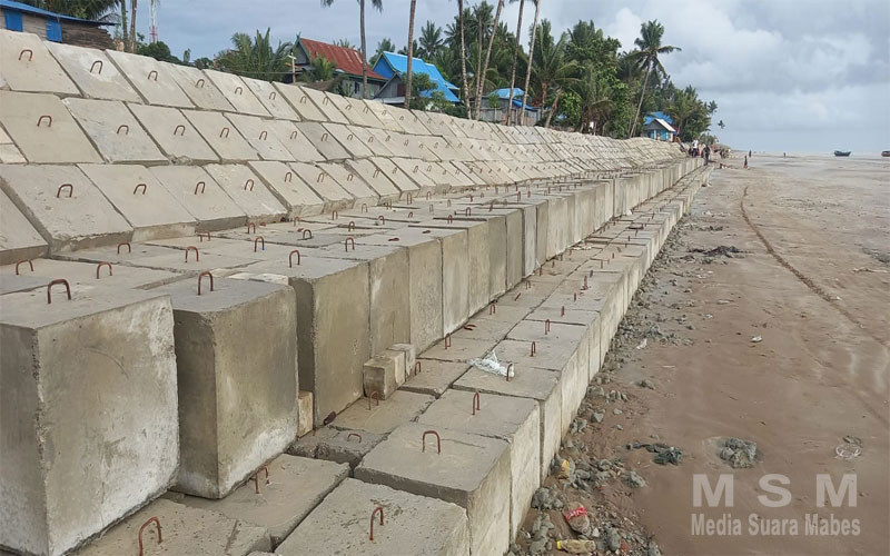 “Pekerjaan konstruksi pengaman pantai dengan panjang 150.m, saat ini telah selesai sesuai kontrak, bahkan pekerjaan pengaman Pantai ini sudah rampung sejak bulan kemarin, artinya selesai sebelum