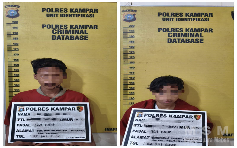 Berdasarkan laporan tersebut dan keterangan dari saksi Hakim Mustaqim, Tim Resmob langsung melakukan penyelidikan intensif. Setelah beberapa hari melakukan penyelidikan, Tim Resmob mendapatkan informasi tentang kedua tersangka yaitu RF (15) dan FA (14), keduanya masih berstatus pelajar. Kedua tersangka berhasil dibekuk pada Selasa, 22 Juli 2025, di lokasi yang berbeda. Pelaku RF diamankan di Desa Muara Uwai, sementara pelaku FA di Desa Pasir Sialang, keduanya di Kecamatan Bangkinang, Kabupaten Kampar.