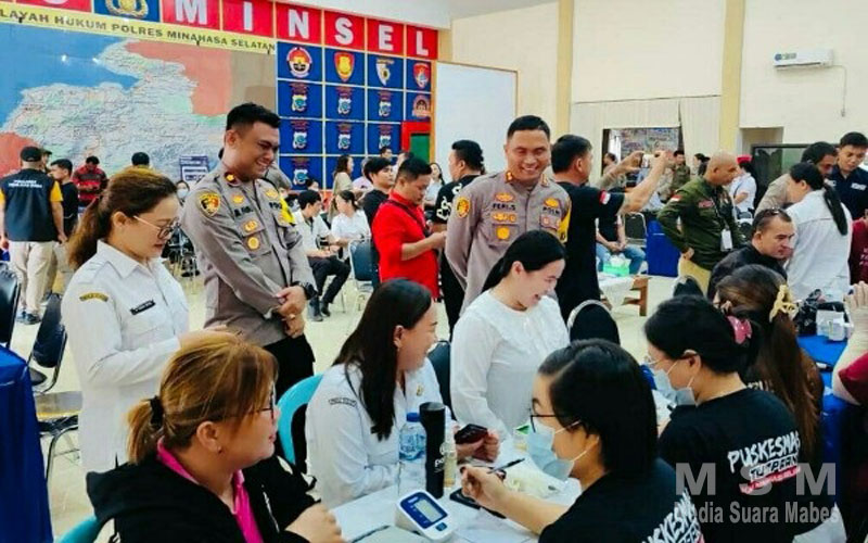 MajalahPerwira, Sulut – Polres Minahasa Selatan (Minsel) bersama Bidang Dokkes Polda Sulut dan Dinas Kesehatan melaksanakan pemeriksaan kesehatan dan pengobatan gratis terhadap para penyelenggara Pemilu 2024 yakni petugas PPS, KPPS, PPK, Panwascam, Linmas serta TNI-Polri Pengamanan TPS, di Graha Tatag Trawang Tungga Polres Minsel, Rabu (28/2/2024).