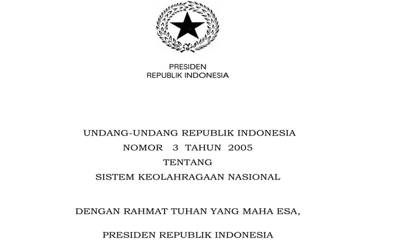 Pemerintah telah mengatur Undang-Undang No. 3 Tahun 2005 Tentang Sistim Keolahragaan Nasional serta yang terbaru Undang-Undang No.11 Tahun 2022 Tentang Keolahragaan yang mengatur tata kelola keolahragaan secara komprehensif. Selain itu, diatur juga tata cara dan mekanisme penyelenggaraan suatu kejuaraan olahraga.
