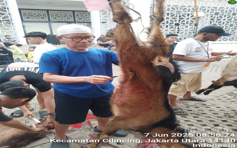 MediaSuaraMabes, Rorotan — Kegiatan penyembelihan hewan kurban di Masjid Al Barkah, Rusunawa Rorotan, Jakarta Utara, berlangsung dengan lancar dan penuh semangat gotong royong. Tahun ini, panitia kurban berhasil menyembelih sebanyak 2 ekor sapi dan 11 ekor kambing yang merupakan sumbangan dari warga, Babek TNI, serta sejumlah donatur lainnya.