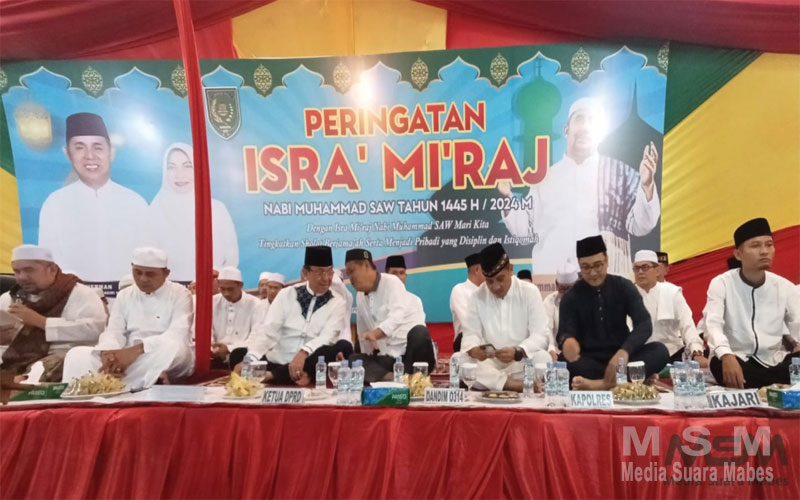 MajalahPerwira, Indragiri Hilir – Peringatan Isra’Mi’raj Nabi Muhammad SAW Tahun 1445 H/2024 M berlangsung meriah di kediaman Pj.Bupati H.Herman.ST MT. Acara ini dihadiri oleh Dandim 0314, Kapolres Inhil, Ketua DPRD, Kajari Inhil, H.M.Wardan, Syamsuddin Uti, Agus Hariansyah Anggota DPRD Prov Riau, serta seluruh Kepala Dinas dan Instansi Jawatan.