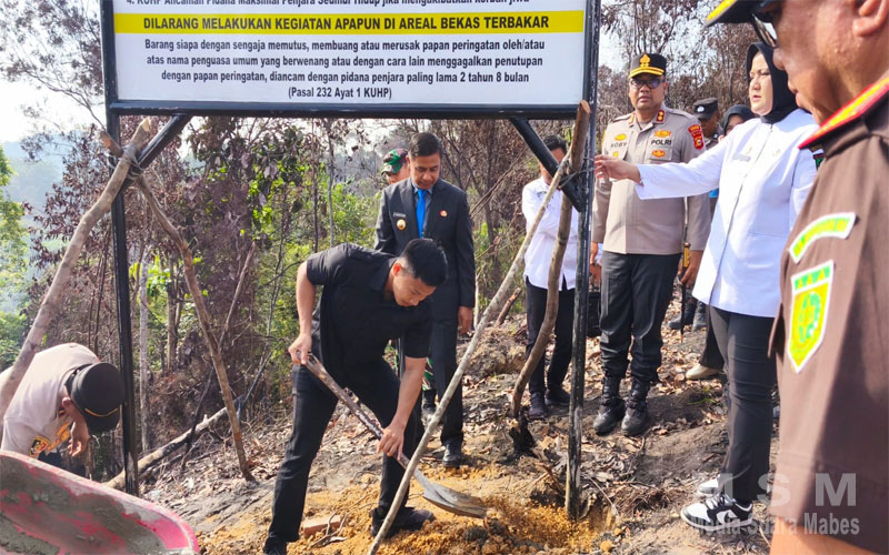 Plang peringatan dipasang permanen di lahan seluas 12 hektare yang sebelumnya dilanda karhutla. Selain itu, dilakukan juga penanaman pohon secara simbolis di lahan yang terbakar.