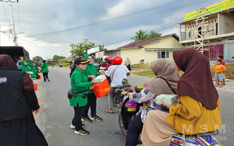MajalahPerwira, Landak Kalbar – Menambah keceriaan dan keimanan di bulan suci Ramadhan, Persit KCK Cabang LV Yonarmed 16 PD XII/TANJUNGPURA membagikan takjil gratis kepada masyarakat sekitar kota Ngabang, Kab Landak Provinsi Kalimantan Barat.