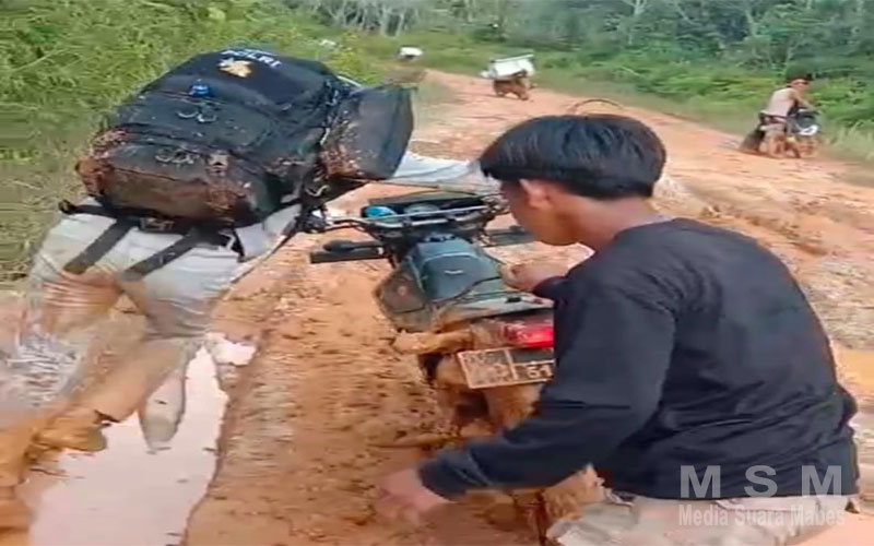 “Kondisi jalan yang rusak parah dan lumpur yang dalam membuat anggota harus berjibaku untuk melewati jalan tersebut. Ada, anggota kita terjatuh di lumpur atau bahkan sepeda motor mereka mengalami putus rantai” Ucapnya Selasa (13/02).