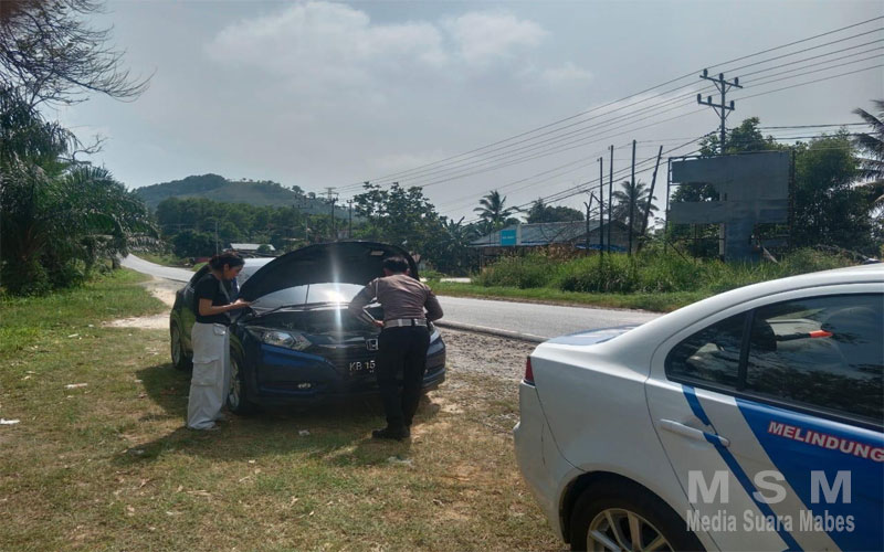 Saat melaksanakan patroli rutin, Bripda Galang dan Bripda Risky Vallen menemukan seorang pengendara yang mobilnya mengalami mogok akibat overheat. Tanpa ragu, petugas segera menghentikan mobilnya dan menghampiri pengendara untuk menanyakan permasalahan yang dialami.