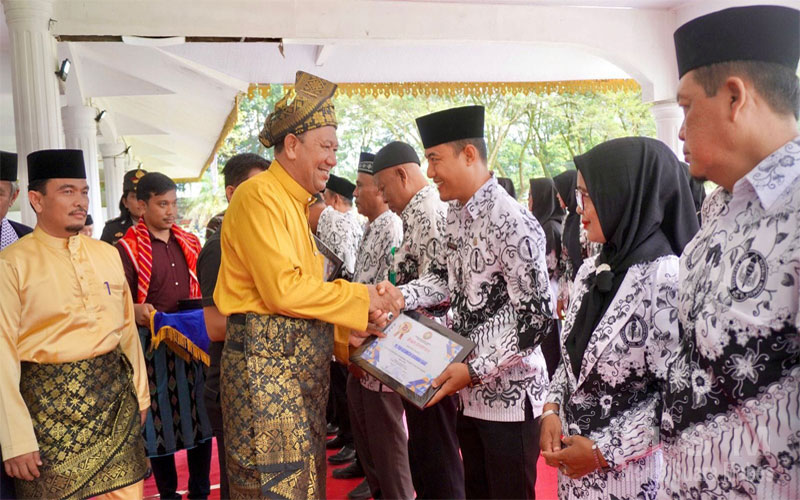 MajalahPerwira, Langkat – Plt Bupati Langkat H.Syah Afandin SH menjadi Pembina Upacara Hari Guru Nasional (HGN) dan HUT Persatuan Guru Republik Indonesia (PGRI) ke-78 Tahun 2023, bertempat di Alun-alun T Amir Hamzah Stabat, Sabtu (25/11/2023).