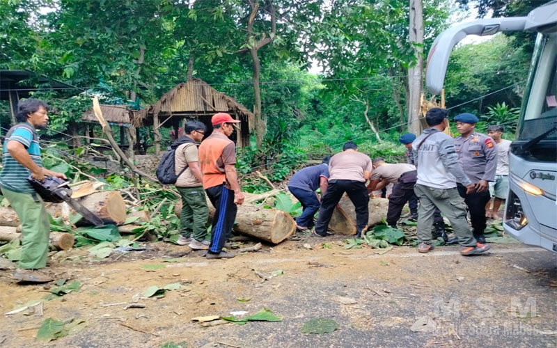 Kapolsek Kawasan Pelabuhan Gilimanuk, Kompol I Komang Muliyadi, S.H., M.M., memimpin langsung proses evakuasi pohon tumbang bersama personel Polsek Kawasan Pelabuhan Gilimanuk, Brimob, petugas Taman Nasional Bali Barat (TNBB), dan warga setempat. Berkat kerja sama tersebut, pohon berhasil disingkirkan, dan arus lalu lintas yang sempat terganggu kini berangsur normal.