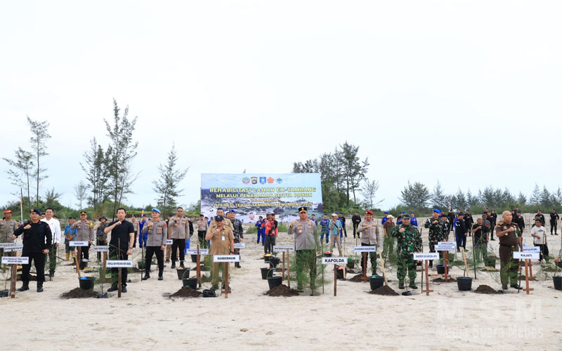 Dari pantauan, penanaman yang dilakukan Polda Babel ini dipusatkan di Kawasan Pantai Lintas Timur Desa Air Anyir Kabupaten Bangka.