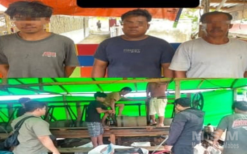 Dari pantauan awak media sekitar jam 5 subuh, tim penindakan dari unit 4 Subdit 4 Ditreskrimsus Polda Kalbar telah mengamankan 6 orang diduga pelaku penambangan emas tanpa ijin jenis gelondong milik BAS, GUS dan SUP.