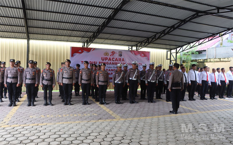 Pada kesempatan tersebut, personel yang bertugas menyerahkan air suci Pataka kepada Waka Polda Papua Tengah selaku inspektur upacara dalam rangkaian tradisi yang penuh makna ini. Upacara ini menjadi simbol penyucian dan kesiapan seluruh jajaran Polda Papua Tengah dalam menyongsong Hari Bhayangkara ke-79.