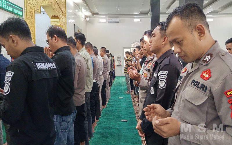 MajalahPerwira (Jaringan MSM), Palu – Kepolisian Daerah (Polda) Sulawesi Tengah (Sulteng) melaksanakan shalat ghoib untuk mendoakan tiga anggota Polri yang gugur dalam tugas di Polres Way Kanan, Lampung, Selasa (18/3/2025) di Masjid Ar Rahman Polda Sulteng.