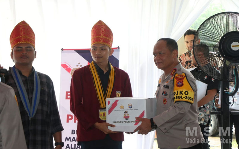 Kapolda Sumatera Barat, Irjen Pol Dr. Drs. Gatot Tri Suryanta, M.Si, CSFA dalam sambutannya menyampaikan apresiasi atas partisipasi aktif dari Aliansi Mahasiswa, BEM Muhammdiyah, OKP dalam kegiatan baksos ini. Kapolda berharap kolaborasi semacam ini dapat terus berlanjut guna menciptakan kondisi masyarakat yang lebih baik dan harmonis.