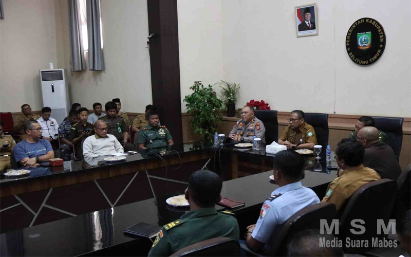 MajalahPerwira (Jaringan MSM), Babel – Menindaklanjuti atensi Kapolda Kep Babel Irjen Pol Drs Hendro Pandowo M.Si. Kapolres Belitung Timur AKBP Indra Feri Dalimunthe, S.H., S.I.K., M.H. bersama Forum Koordinasi Pimpinan Daerah (Forkopimda) Kab. Belitung Timur menggelar Rapat Koordinasi (Rakor) di ruang rapat kantor Bupati Kab. Belitung Timur. Senin(20/1/2025)Siang.