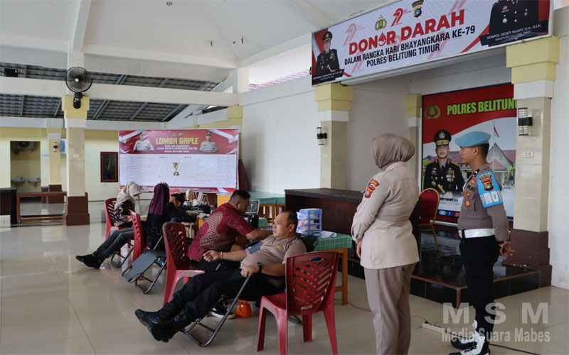 MediaSuaraMabes, Babel – Dalam rangka menyambut Hari Bhayangkara ke-79, Kepolisian Resor Belitung Timur (Polres Beltim) sukses menggelar kegiatan Bakti Kesehatan Donor Darah, Kamis(12/06/ 2025).