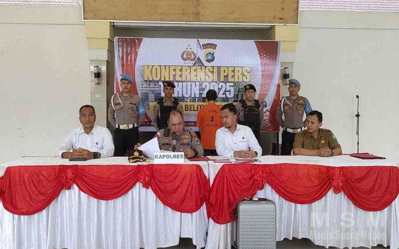MajalahPerwira (Jaringan MSM), Babel – Awal Tahun 2025 Polres Beltim laksanakan Konferensi Pers dalam kasus Tindak Pidana Perampas Kemerdekaan Seseorang,Kapolres Belitung Timur,AKBP Indra Feri Dalimunthe., SH., SIK., MH., Pimpin langsung Konferemsi Pers yang di laksanakan di Joglo Graha Patriattama Mako Polres Belitung Timur.