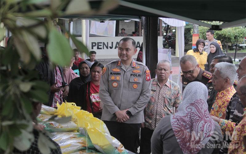 MediaSuaraMabes, Ketapang – Polda Kalbar, Polres Ketapang menggelar gerakan pangan murah Polri yang berlangsung di halaman Mapolres Ketapang, Kalimantan Barat, Kamis (14/08/2025) Pukul 10.00 Wib. Kegiatan Gerakan pangan murah dimulai dengan pelaksanaan kick off Gerakan pangan murah bersama Kapolri yang diikuti langsung Kapolres Ketapang AKBP Muhammad Harris bersama jajaran Forkopimda Kabupaten Ketapang melalui siaran daring zoom meeting.