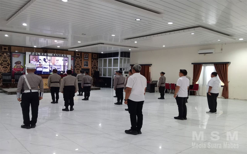 MediaSuaraMabes, Sambas Kalbar – Pada hari Rabu, 18 Juni 2025, pukul 10.00 WIB, Polres Sambas melaksanakan kegiatan Upacara Pemuliaan Nilai-Nilai Luhur Tribrata secara virtual. Kegiatan ini berlangsung di Aula Dhira Wijaya Polres Sambas dan diikuti oleh seluruh PJU Polres Sambas.