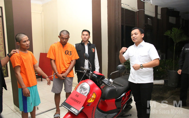 Polisi menyita sejumlah barang bukti dari kedua tersangka, antara lain sepeda motor Honda Scoopy yang digunakan dalam aksi jambret, ponsel korban, serta pakaian yang dikenakan saat kejadian.
