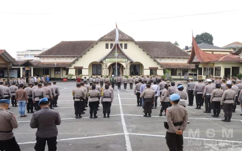 MajalahPerwira, Bukittinggi – Polresta Bukittinggi menggelar apel dalam rangka pelaksanaan pengamanan agenda kampanye rapat umum yang digelar oleh salah satu partai peserta pemilu di lapangan bola atas ngarai, Sabtu 3/02/2024.
