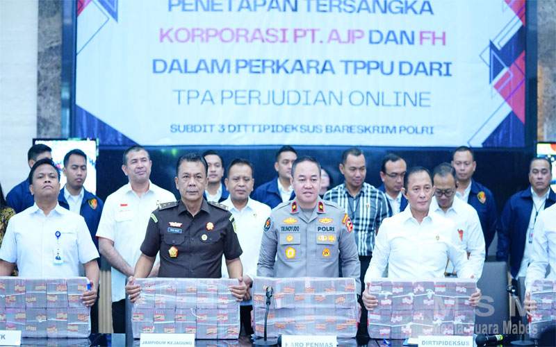 MajalahPerwira (Jaringan MSM), Jakarta – Direktorat Tindak Pidana Ekonomi Khusus (Dirtipideksus) Bareskrim Polri menetapkan korporasi PT AJP dan seorang individu berinisial FH sebagai tersangka dalam kasus Tindak Pidana Pencucian Uang (TPPU) yang berasal dari tindak pidana perjudian online. Penyidik juga berhasil menyita uang senilai Rp 103,27 miliar yang tersebar di 15 rekening bank.