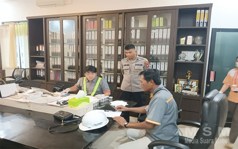 MediaSuaraMabes, Ketapang — Personel Polsek Nanga Tayap, Aipda Teguh dan Aipda Sarjanto, melaksanakan kegiatan pengamanan dalam rangka pelaksanaan tes narkoba terhadap karyawan PT. Lanang Sawit Emas yang berlokasi di Desa Sungai Kelik, Kecamatan Nanga Tayap, Kabupaten Ketapang.(14/07/2025)