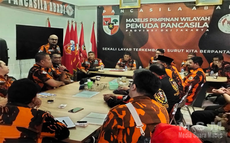 MajalahPerwira (Jaringan MSM), Jakarta – Ketua Majelis Pimpinan Wilayah (MPW) Pemuda Pancasila (PP) DKI Jakarta memimpin rapat koordinasi yang berlangsung di Graha Pejaten, Jakarta Selatan. Rapat ini dihadiri oleh berbagai pihak, antara lain perwakilan dari bidang politik pertahanan dan keamanan nasional, bidang hukum HAM dan hubungan lembaga nasional, serta Komando Inti Mahatidana (KOTI) dari masing-masing Majelis Pimpinan Cabang (MPC) PP se-DKI Jakarta.