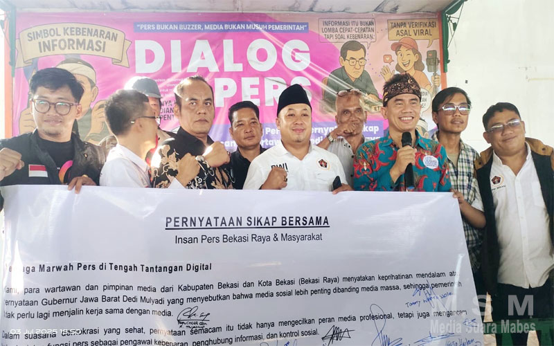 MediaSuaraMabes, Bekasi – Ratusan insan pers Kabupaten Bekasi dan Kota Bekasi berkumpul di Saung Jajaka, Tambun Utara Kabupaten Bekasi, Kamis, 03 Juli 2025. Mereka menyoal statemen Gubernur Jawa Barat yang akrab dipanggil Kang Dedi Mulyadi (KDM) karena secara terang terangan mengajak masyarakat untuk tidak bekerjasama dengan media. Statemen itu viral di media sosial dan menyakiti perasaan insan media.