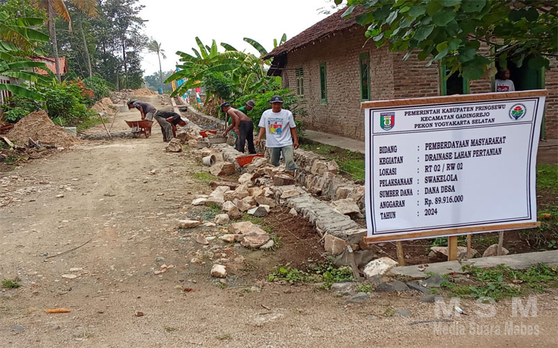 Pembangunan drainase tersebut bagian dari langkah pemerintah desa yogyakarta selatan untuk menanggulangi banjir di saat musim penghujan, dan sekaligus pembangunan drainase untuk pengairan persawahan dalam bidang pertanian.