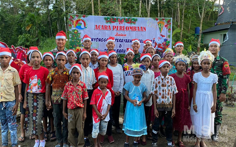 MajalahPerwira, Kabupaten Keerom – Menyambut Hari Raya Natal dengan penuh kebahagian, Satuan Tugas Pengaman Perbatasan RI-PNG Sektor Utara, Yonif 122/TS, Pos Wembi Jajaran Kipur D mengadakan lomba Vocal Group dan Menyanyikan lagu Natal, tepatnya di Kampung Wembi, Distrik Mannem, Kabupaten Keerom, Papua. (22/12/2023)