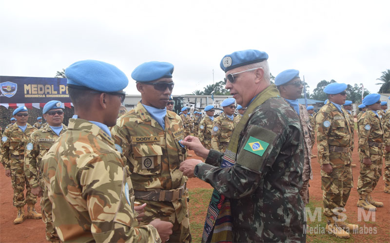 “MONUSCO sangat bangga atas prestasi yang telah diraih oleh prajurit Kompi Zeni TNI. Kalian telah melaksanakan misi perdamaian dengan penuh dedikasi, menyelesaikan setiap tantangan yang dihadapi, dan memberikan banyak kontribusi luar biasa. Kalian sangat pantas mendapatkan Medali Kehormatan PBB, GARUDA,” ujar Letjen Gomes.