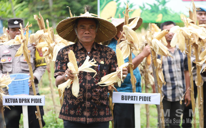 MediaSuaraMabes, Pidie – Sekda Pidie Drs. Samsul Azhar menghadiri kegiatan Panen Raya Jagung Serentak Kuartal II dalam Rangka Mendukung Swasembada Pangan Tahun 2025, kegiatan ini berlangung di kampong Kumbang Busu Kecamatan Mutiara Timur. (05/06/2025).