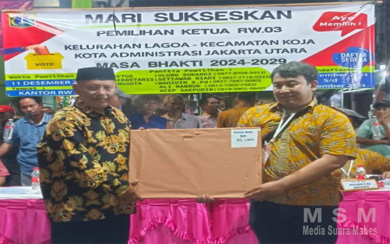 MajalahPerwira (MSM Network), Jakut – Kami mengucapkan selamat kepada Bapak Bambang Siswoyo atas terpilihnya beliau sebagai Ketua Rukun Warga (RW) 03 Kelurahan Lagoa, Kecamatan Koja, Jakarta Utara. Terpilihnya Bapak Bambang Siswoyo menggantikan pengurus RW yang lama yang baru saja meninggal dunia, menandai awal baru bagi pembangunan dan kemajuan di lingkungan RW 03.