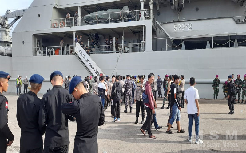 “Untuk simpatisan yang menumpang di Kapal KRI Teluk Palu terdiri dari laki-laki 475 orang dan perempuan 94 orang, sedangkan di di KRI Teluk Bintuni terdiri dari simpatisan laki-laki 369 orang dan perempuan sebanyak 55 orang”, kata Petit.