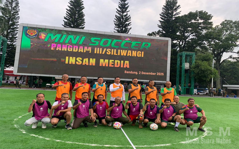 MediaSuaraMabes, Bandung – Kodam III/Siliwangi menggelar pertandingan mini soccer mempertemukan tim Kodam III/Slw melawan tim Insan Media di Lapangan Prajurit Kodam III/Slw, Jl. Aceh No. 69 Kota Bandung, Selasa (02/12/2025).