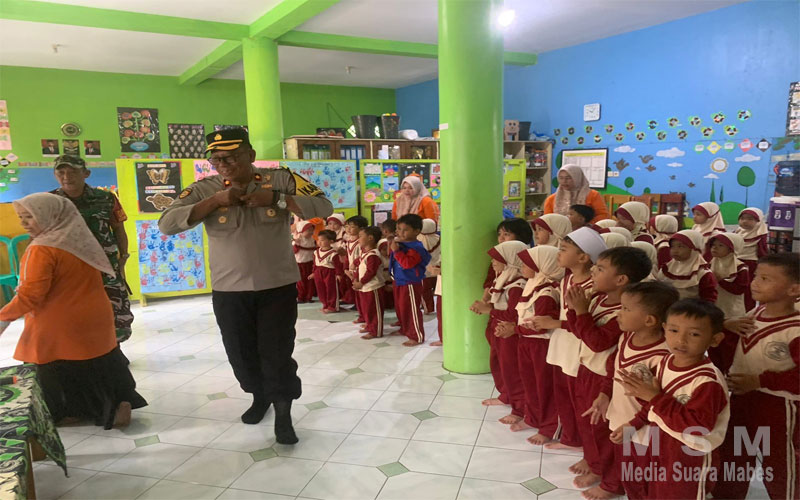 MajalahPerwira (MSM Group), Sukabumi – Wajah-wajah ceria ditunjukkan oleh puluhan pelajar Pendidikan Usia Dini (PAUD) Riyadhul Aliyah yang beralamat di Jalan Raya Jayanti RT 04/04 Desa Jayanti Kecamatan Palabuhanratu Kabupaten Sukabumi Jawa Barat, pada saat menyambut rombongan anggota TNI dan Polisi dari Danramil dan Polsek Palabuhanratu Polres Sukabumi pada Rabu pagi (23/10/24).