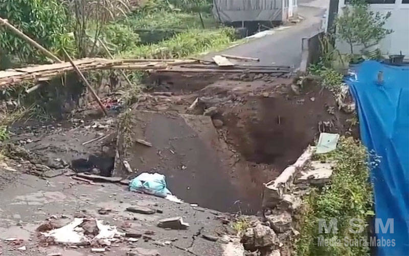Akhirnya dengan dihantam oleh Cuaca ekstrem belakangan ini jembatan tersebut akhirnya roboh total dan longsor di sempadannya sehingga sangat membahayakan pemukiman warga yang begitu padat.