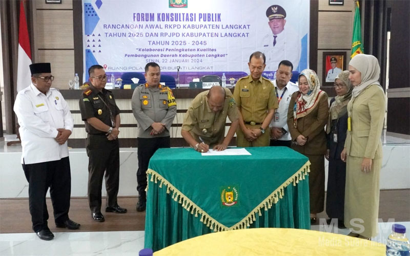 MajalahPerwira, Langkat – Plt Bupati Langkat H.Syah Afandin SH membuka kegiatan Forum Konsultasi Publik Rancangan Awal RKPD Kabupaten Langkat tahun 2025 dan Konsultasi Publik RPJMD Kabupaten Langkat Tahun 2025-2045, di Ruang Pola Kantor Bupati Langkat , Senin 22 Januari 2024.