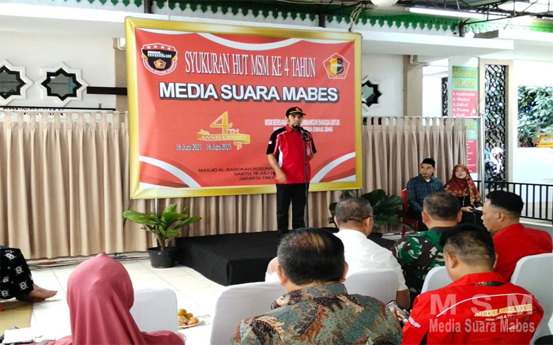 MediaSuaraMabes, Jakarta – Media Suara Mabes (MSM) memperingati hari ulang tahunnya yang ke-4 dengan menggelar acara syukuran bertema “MSM Bersama Santri Membangun Bangsa Menuju Indonesia Emas 2045″, pada Sabtu (19/07), bertempat di Masjid Al Barokah Rusunawa BLK, Pasar Rebo, Jakarta Timur.