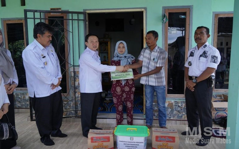 Bantuan diserahkan langsung oleh Pj.Bupati Pringsewu Marindo Kurniawan didampingi Sekda Pringsewu Heri Iswahyudi beserta kepala perangkat daerah terkait, kepada keluarga korban, Rabu (6/3/2024).