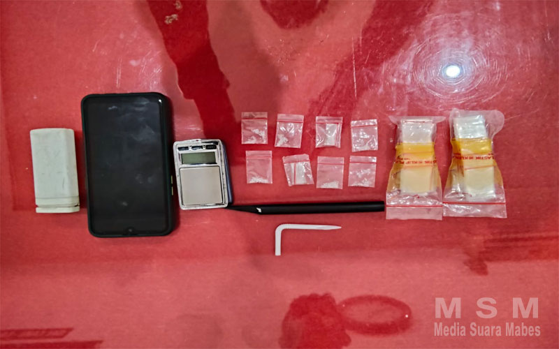 “ Dari hasil penggeledahan yang disaksikan perangkat warga setempat, kami mengamankan pelaku berinisial Y dan beberapa barang bukti dari tangan pelaku berupa 8 kantong klip transparan ukuran kecil berisi serbuk kristal diduga narkotika jenis sabu dengan berat total 1,74 gram brutto, 1 buah timbangan digital, 2 buah pipet modifikasi sendok sabu, serta 2 bungkus kantong klip transparan kosong ” jelas AKP Aris, Selasa (29/07/2025) Pukul 15.00 Wib.