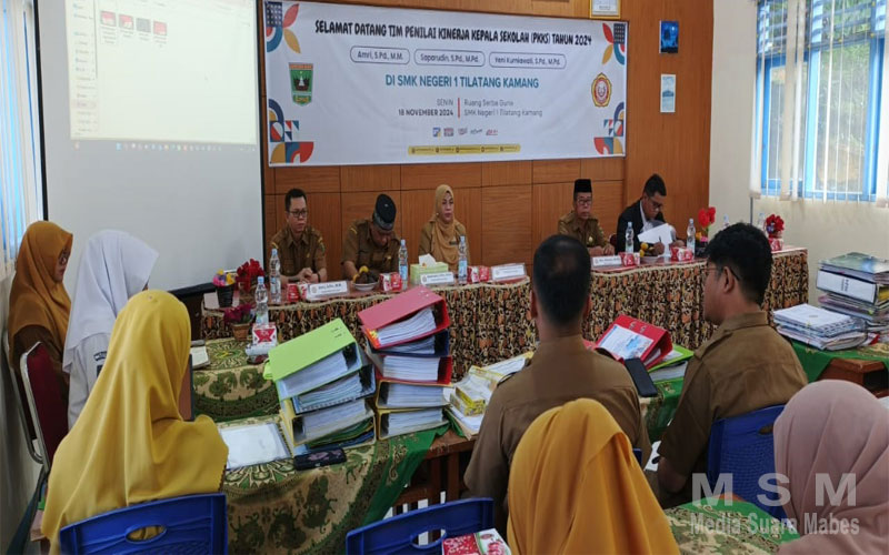 MajalahPerwira (MSM Network), Agam – Tim Penilai Kinerja Kepala Sekolah (PKKS) dari Dinas Pendidikan propinsi Sumatera Barat melaksanakan penilaian dan evaluasi terhadap Kinerja Kepala sekolah berdasarkan yang disaksikan ketua Komite, Bendahara, Dewan guru, Orang tua murid, Lsm, Wartawan, dan seluruh civitas sekolah, penilaian berdasarkan indikator yang mencakup perencanaan, kepemimpinan, pengelolaan sumber daya dalam mengukur efektivitas kepala sekolah mencapai target yang diawali di Ruang Serbaguna SMK Negeri 1 Tilatang Kamang pada Senin, (18/11/2024)