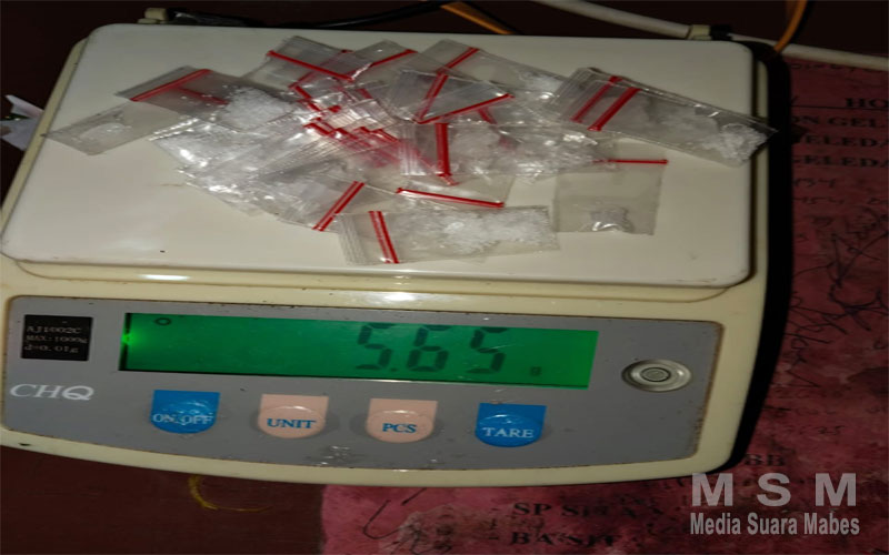Adapun barang bukti yang berhasil diamankan yaitu barang yang diduga narkotika jenis sabu-sabu sebanyak 27 plastik klip kecil dengan total seberat 5,65 gram, dan 1 (satu) unit handphone Merk OPPO A 12 warna biru
