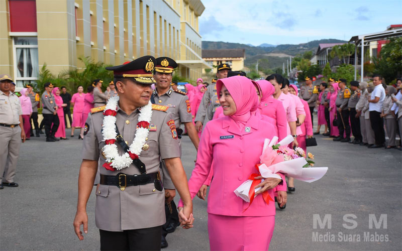 Langkah keduanya diikuti oleh Kapolda Sulteng bersama istri, Wakapolda Sulteng bersama istri, pejabat utama Polda Sulteng dan para Kapolres yang didampingi istri mengantarkannya hingga gerbang pintu keluar Polda Sulteng.