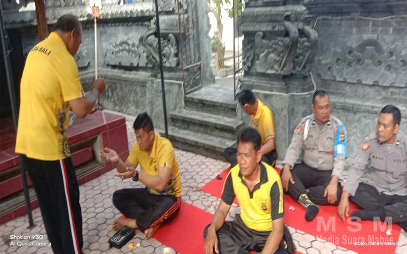 MajalahPerwira, Jembrana Bali – Personel Polsek Melaya, Polres Jembrana yang beragama Hindu mempererat ikatan spiritual mereka dengan melaksanakan sembahyang bersama di Pura Pasupati Polsek Melaya, Kecamatan Melaya, Kabupaten Jembrana, Sabtu